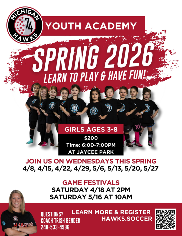 Our Junior Hawks will focus on improving players technical skills on the ball through proper technique. There will be a 30 minute session, followed by 45 minutes of games. Players will learn the rules of the game and coaches will challenge each individual player accordingly. Coaches will prepare your child for the next level through fun, active, and engaging activities.